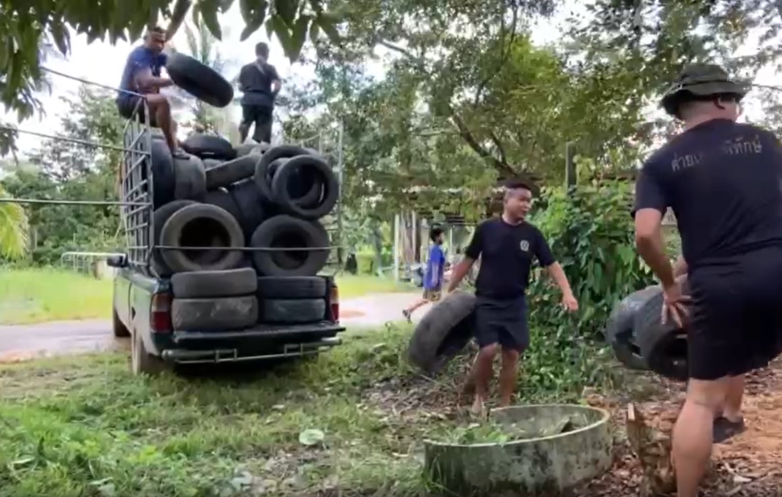 ชาวบ้านนำยางรถยนต์กว่า 100 เส้น มามอบให้กับ บ้านหมื่นด่าน ต.บ่อพลอย อ.บ่อไร่ จ.ตราด เพื่อนำไปทำบังเกอร์หลบภัยให้โรงเรียนและหมู่บ้านใกล้แนวชายแดน ไทย-กัมพูชา หลังพบบังเกอร์หลบภัยไม่เพียงพอต่อจำนวนนักเรียน