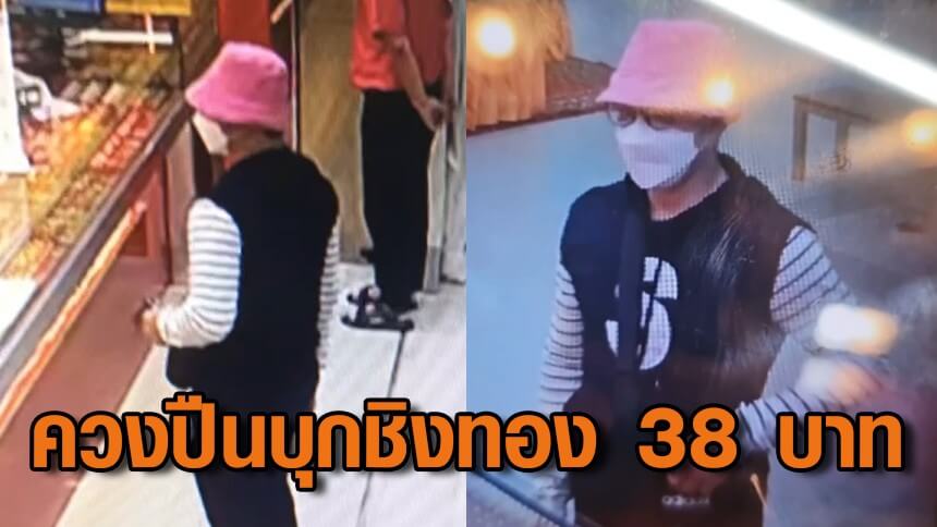 จากการสอบถามนางสาวกลอย พนักงานร้านทองได้เปิดเผยว่าตอนเกิดเหตุเป็นช่วงกำลังจัดร้าน เพราะเพิ่งเปิดมีผู้ก่อเหตุสวมหมวกสีชมพู ใส่แมสปิดบังใบหน้าเข้ามาขอทองคำรูปพรรณหนัก 10 บา ทจากนั้นจึงได้บอกให้ถอดหมวกและแมสเพื่อที่จะได้ให้บริการ แต่พูดยังไม่ทันขาดคำผู้ก่อเหตุก็ได้ควักอาวุธปืนออกมาจี้พนักงานแล้วบอกให้เอาทองรูปพรรณหนัก 10 บาทมาให้ 2 เส้นและสร้อยคอทองคำรูปพรรณหนัก 9 บาทอีก 2 เส้น รวมเป็น 4 เส้นน้ำหนักรวม 38 บาท