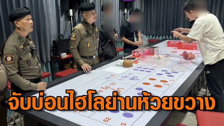 ตำรวจนำกำลังจับบ่อนไฮโลย่านห้วยขวาง รวบ 23 นักพนัน เจ้ามือสารภาพเพิ่งเปิดได้ 3 วัน