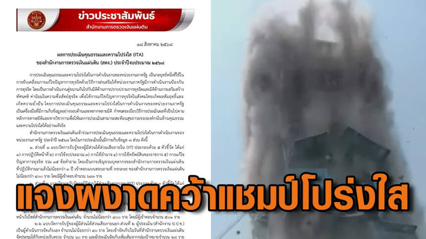 สตง.แจงวิธีการเก็บข้อมูล 3 ส่วน หลังคว้าอันดับ 1 องค์กรอิสระโปร่งใสสูงสุด