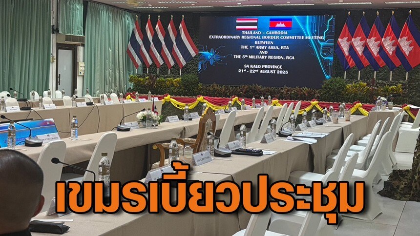 ผู้สื่อข่าวรายงานว่า 16.30 น.วันที่ 21 ส.ค.68 ที่สโมสรนายทหาร มณฑลทหารบกที่ 19 ค่ายสุรสิงหนาท จ.สระแก้ว กองทัพภาคที่ 1 นำโดย พลตรี สุรวิชญ์ แดงจันทร์ เสนาธิการ กองทัพภาคที่ 1 เป็นประธานคณะทำงาน กองเลขานุการฯ ฝ่ายไทย และภูมิภาคทหารที่ 5 นำโดย พลตรี ซอ กึมปะ รองผู้บัญชาการภูมิภาคทหารที่ 5 เป็นประธานคณะทำงาน กองเลขานุการฯ ฝ่ายกัมพูชา จัดการประชุมคณะกรรมการชายแดนภูมิภาคไทย - ก้มพชา (RBC) สมัยวิสามัญ ระดับเลขานุการ ซึ่งก่อนถึงเวลา 14.00 น.ทางฝ่ายไทย ได้รับแจ้งว่า ทางประธานฝ่ายเลขานุการฯ ฝั่งกัมพูชา ซึ่งยังไม่ได้เดินทางข้ามชายแดนมายังประเทศไทย แจ้งว่า ขอตรวจสอบเอกสารการประชุมฯ ดังกล่าวก่อน ซึ่งมีเพียงเจ้าหน้าที่ส่วนหน้าของฝ่ายกัมพูชา 1 คณะ จำนวน 6 นาย ที่เดินทางข้ามแดนมาก่อนล่วงหน้า ที่บริเวณด่านผ่านแดนถาวรบ้านคลองลึก อ.อรัญประเทศ เท่านั้น ทำให้เวลาของการประชุมคณะกรรมการชายแดนภูมิภาคไทย - กัมพูชา (RBC) สมัยวิสามัญ ระดับเลขานุการ ต้องเลื่อนออกไป ขณะที่สถานที่ประชุมฯ มีสื่อมวลชนและเจ้าหน้าที่ฝ่ายไทยเตรียมความพร้อมไว้หมดแล้ว ในการประชุมจะเป็นการนำข้อตกลง 13 ข้อ จากการประชุมระหว่างไทยและกัมพูชา ที่ได้มีการจัดการประชุมในระดับ GBC ณ กรุงกัวลาลัมเปอร์ สหพันธรัฐมาเลเซีย