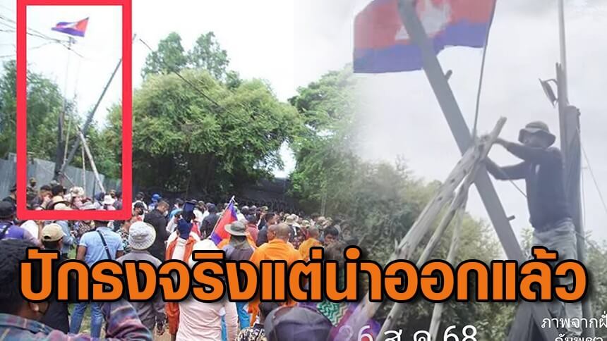 ศูนย์ปฏิบัติการ กองทัพภาคที่ 1 โดย กองกำลังบูรพา ชี้แจงภาพที่ปรากฏตามสื่อออนไลน์เมื่อวันที่ 26 ส.ค.68 ว่าประชาชนกัมพูชาได้นำธงชาติกัมพูชา มาปักเสาธง หน้าแนวลวดหนามพื้นที่บ้านหนองจานนั้น