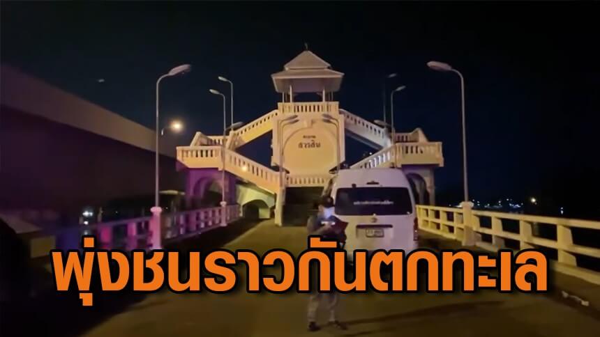 กู้ชีพเร่งค้นหากระบะพุ่งชนราวกันที่สะพานสารสินตกทะเล จมหาย 1 ราย
