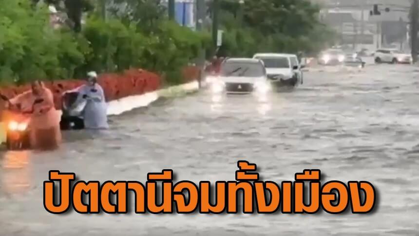 มวลน้ำทะลักเข้าท่วมย่านเศรษฐกิจกลางเมืองปัตตานี หลังระดับน้ำเพิ่มขึ้นอย่างรวดเร็ว ก่อนเอ่อล้นตลิ่งอย่างฉับพลันท่วมพื้นที่ต่างๆ ในเขตเทศบาลเมือง ระดับน้ำสูงเฉลี่ย 40–50 ซม. รถเล็กไม่สามารถสัญจรได้