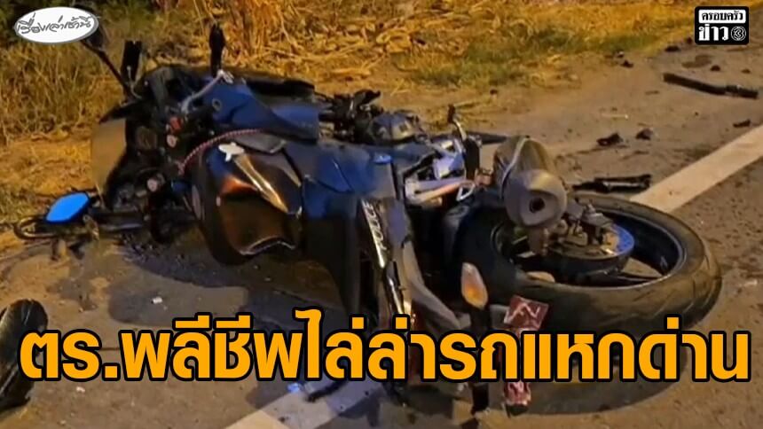 สลด ตำรวจขี่จักรยานยนต์ไล่ล่ารถแหกด่าน ก่อนถูกเบียด เสียหลักชนเสาไฟ ดับ 1 นาย เจ็บอีก 1 นาย