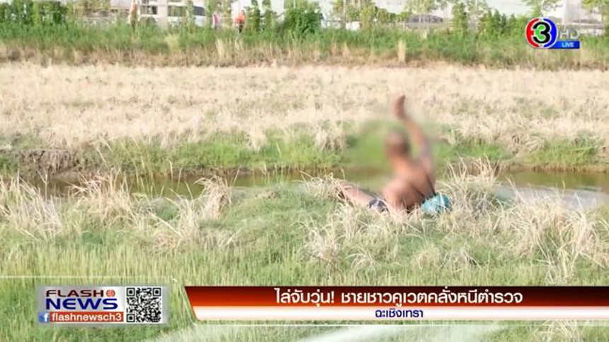 ตำรวจและกู้ภัยใช้เวลากว่าหนึ่งชั่วโมง ไล่จับชายชาวคูเวต ที่คลุ้มคลั่ง วิ่งหนีตำรวจจากถนนมอเตอร์เวย์ ออกมากลางทุ่งนา พื้นที่อำเภอบางปะกง จังหวัดฉะเชิงเทรา โดยชายดังกล่าว นั่งรถแท็กซี่มาจากพัทยา จะเข้ากรุงเทพฯ แต่รถเกิดเสีย พอเห็นเจ้าหน้าที่ไปช่วยเหลือ กลับคลุ้มคลั่งวิ่งหนี สาเหตุอยู่ระหว่างสอบสวน