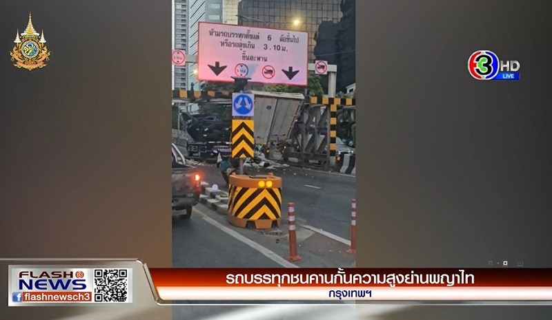 รถบรรทุกชนคานจำกัดความสูงย่านพญาไท