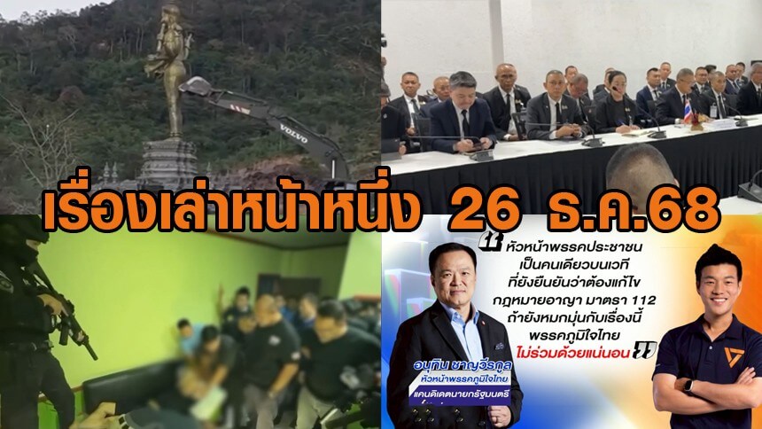 เรื่องเล่าหน้าหนึ่ง 26 ธ.ค.68 อนุทินลั่นไม่ร่วมรัฐบาล ปชน.-ธรรมนัสเปิดตัวกล้าธรรม-ทหารไทยเสียขาที่ 9
