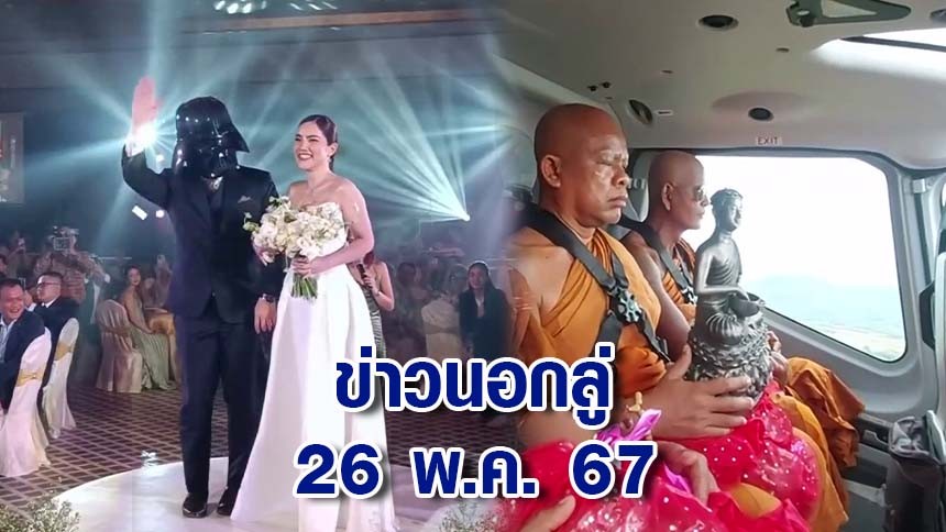 ข่าวนอกลู่ 26 พ.ค. 67 - แหวกแนว! งานแต่งธีมงานวัด แถมเจ้าบ่าวยังใส่หน้ากากตัวร้ายใน 'สตาร์ วอร์ส'