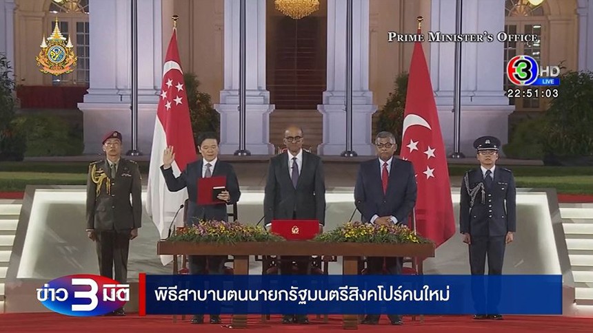 นายลอว์เรนซ์ หว่อง เข้าพิธีสาบานตนเข้ารับตำแหน่งเป็นนายกรัฐมนตรี คนที่ 4 ของสิงคโปร์แล้วในวันนี้ รับไม้ต่อจาก นายกรัฐมนตรีลี เซียน ลุง ที่ลงจากตำแหน่ง หลังบริหารประเทศสิงคโปร์มายาวนาน 20 ปี