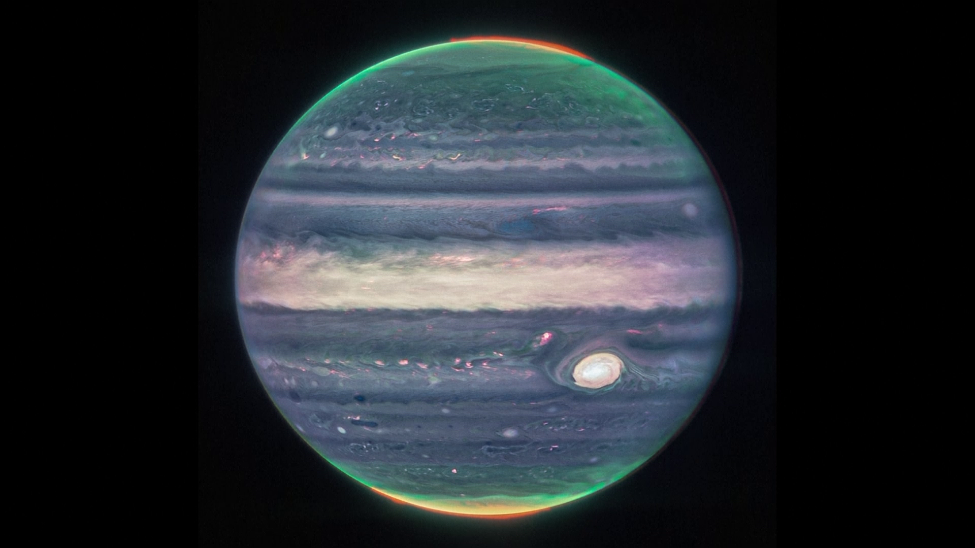 องค์การบริหารการบินอวกาศแห่งชาติสหรัฐฯ หรือ นาซา เปิดเผยภาพถ่ายล่าสุดของดาวจูปิเตอร์ หรือดาวพฤหัส ที่ถ่ายได้จากกล้องโทรทรรสน์อวกาศเจมส์ เว็บบ์ ในช่วงเดือนกรกฎาคมที่ผ่านมา โดยเป็นภาพที่มองเห็นแสงเหนือ แสงใต้ และหมอกควันขั้วโลกที่หมุนวน ขณะที่จุดแดงใหญ่ที่เห็นบนดาวพฤหัสคือพายุลูกใหญ่ที่พอจะกลืนโลกได้ รายล้อมด้วยพายุขนาดเล็กจำนวนนับไม่ถ้วน