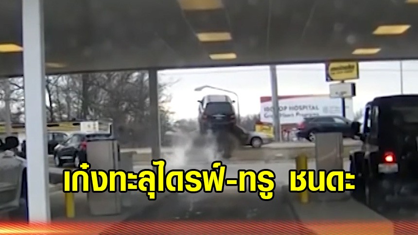 ชมภาพเหตุการณ์ เมื่อรถยนต์คันหนึ่งซึ่งเข้าใช้บริการไดร์ฟ-ทรู ของธนาคารแห่งหนึ่งในสหรัฐ โดยหลังจากที่คนขับรถยนต์คันนี้ใช้บริการเอทีเอ็มเสร็จแล้ว ปรากฏว่าเขาได้ออกตัวรถด้วยความเร็ว จนชนเข้ากับรถยนค์คันที่วิ่งผ่าน และทำให้ตัวรถถึงกับลอยขึ้นฟ้า และตกลงใส่ที่จอดรถฝั่งตรงกันข้าม