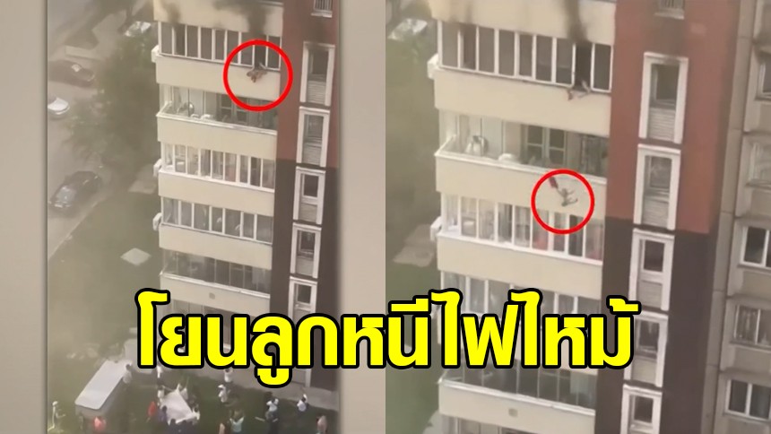 สุดระทึก พ่อแม่ต้องโยนลูกจากอพาร์ทเมนต์ หนีไฟไหม้ โชคดีลงฟูกได้เหมาะเจาะ