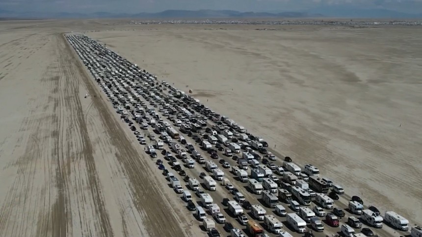 คนนับหมื่น อพยพหนีเทศกาลเบิร์นนิ่งแมน รถติดยาวเหยียด