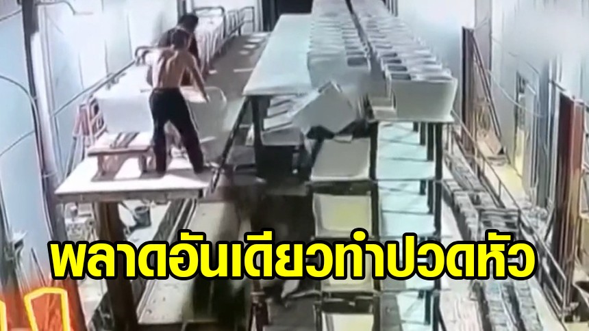 คนงานกุมขมับ ยกโถส้วมพลาดอันเดียว โถส้วมอื่นพังครืนเป็นโดมิโนนับร้อยโถ
