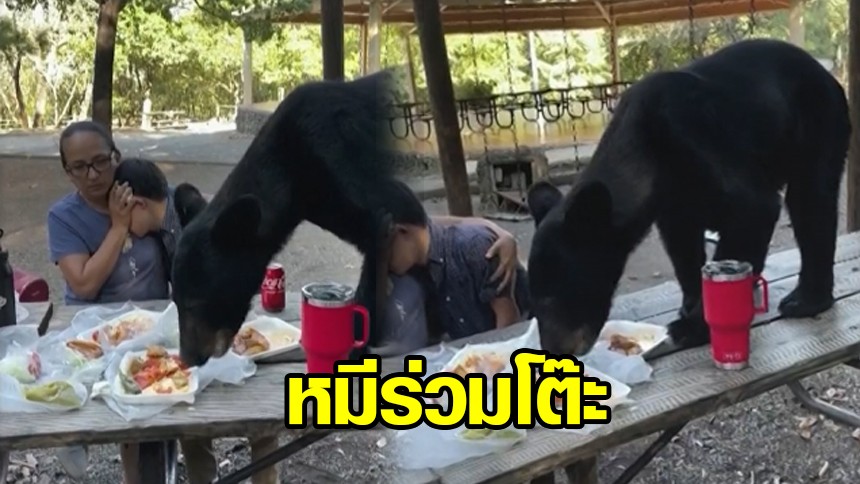 หมีบุกโต๊ะปิกนิก ในเม็กซิโก ครอบครัวนั่งนิ่ง ก่อนอาหารถูกกินเรียบ