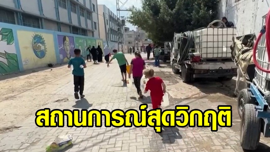 มีภาพของชาวปาเลสไตน์ ไม่ว่าจะเป็นเด็กหรือผู้ใหญ่ ที่ต้องนำถังมารองน้ำที่เหลือน้อยทุกที โดยทุกคนบอกว่า ทั้งน้ำ อาหาร และทุกอย่างที่ต้องใช้สำหรับการดำรงชีวิต เริ่มจะหมดลงแล้ว