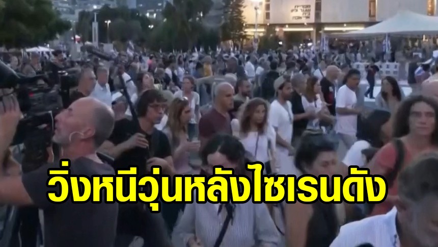 ชมภาพเหตุการณ์ ขณะที่มีการแถลงข่าวที่กรุงเทลอาวีฟ ในอิสราเอล เรื่องตัวประกันที่ถูกกลุ่มฮามาสจับตัวไป โดยมีบรรดาญาติเหยื่อตัวประกันเข้าร่วมจำนวนมาก แต่ทันใดนั้นก็เกิดเสียงไซเรนเตือนการโจมตีด้วยจรวดจากกลุ่มฮามาส ทำให้การแถลงข่าวต้องยกเลิกกลางคัน และต่างคนก็ต้องหนี