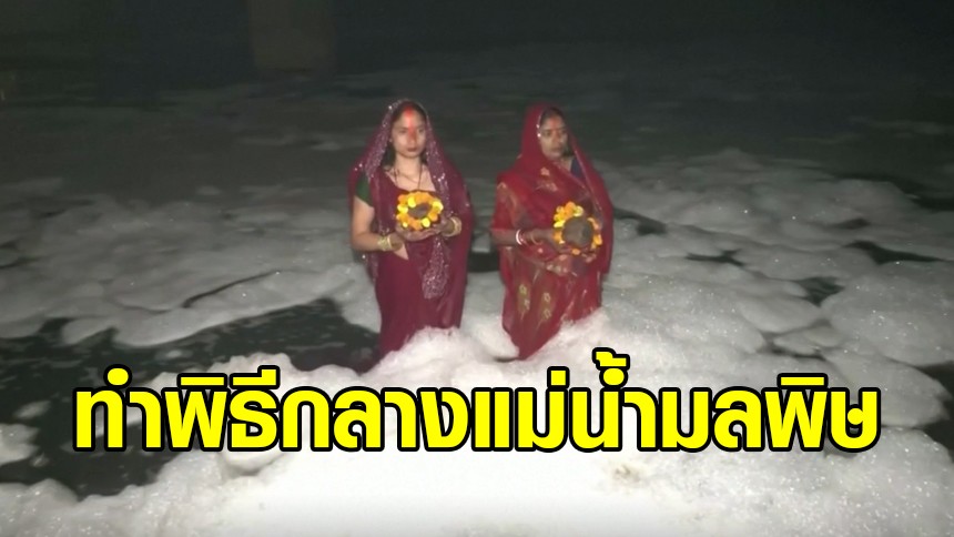 'อินเดีย' เฉลิมฉลองเทศกาลชาธ ปูจา ทำพิธีศักดิ์สิทธิ์กลางแม่น้ำมลพิษ