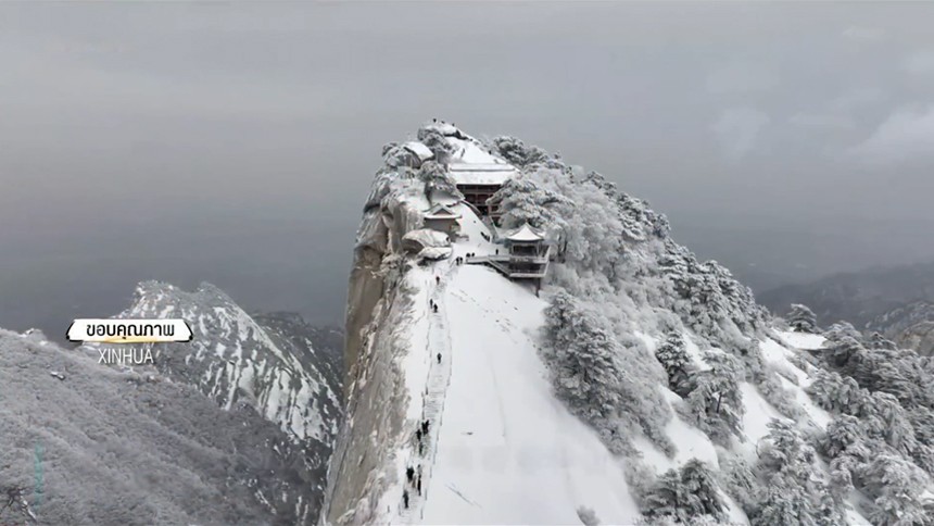 งดงามดั่งสวรรค์! 'ภูเขาหว่าซาน' แห่งจีน ถูกหิมะปกคลุมขาวโพลน พร้อมหมอกหนาว