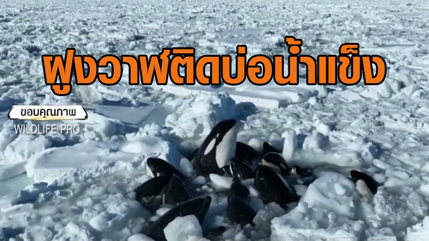 มีภาพฝูงวาฬเพชรฆาต (ออร์ก้า) จำนวน 10 ตัว ที่พวกมันกำลังติดอยู่ในบ่อน้ำแข็งเล็ก ๆ ล้อมลอบด้วยแผ่นน้ำแข็ง นอกชายฝั่งฮอกไกโด ทางตอนเหนือของญี่ปุ่น เมื่อวันอังคาร