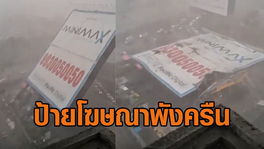มีภาพเหตุการณ์ระทึก ในนครมุมไบ เมืองเอกของรัฐมหาราษฏระ ทางตะวันตกของประเทศอินเดีย เมื่อป้ายโฆษณาขนาดใหญ่ยักษ์ กว้าง 50 เมตร สูง 70 เมตร พังครืนระหว่างพายุฝนพัดถล่ม เมื่อวันจันทร์ที่ 13 พ.ค. ที่ผ่านมา