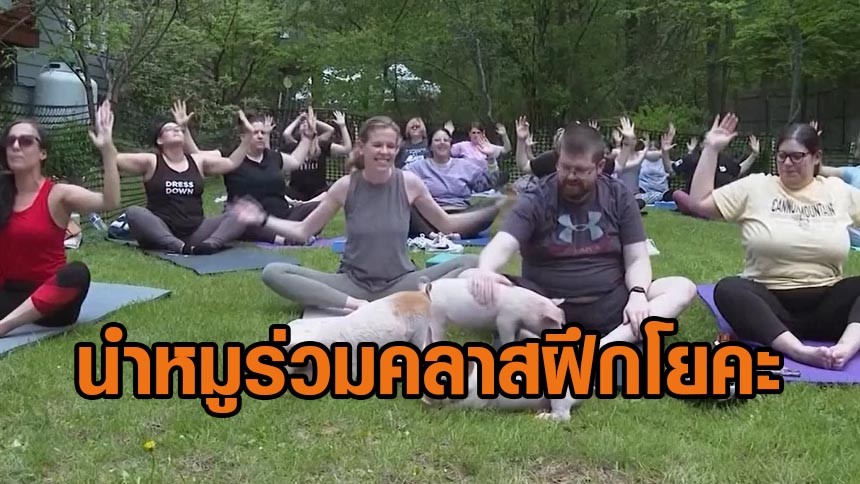 มีภาพคลาสการฝึกโยคะ ที่รัฐแมตซาชูเสต ในสหรัฐฯ ที่มีการนำหมู 3 ตัว มาร่วมในคลาสด้วย เพื่อให้ผู้เล่นผ่อนคลายสุด ๆ