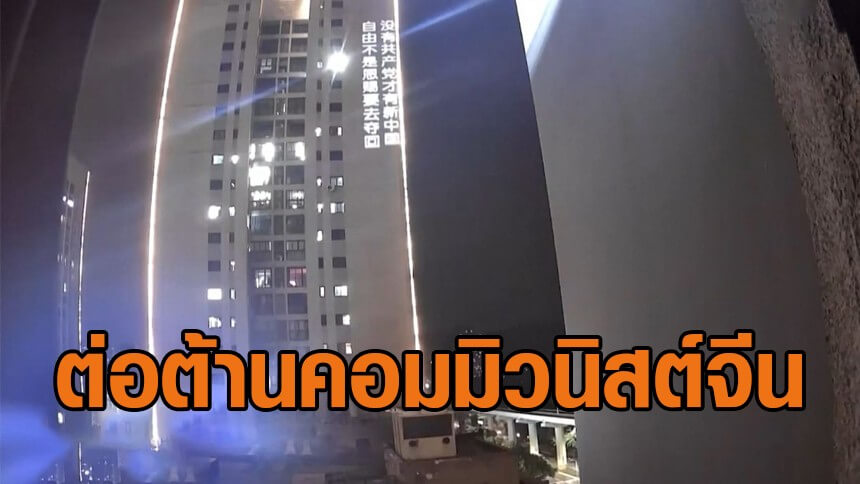 ชายจีนตั้งระบบฉายโปรเจคเตอร์ ข้อความต่อต้านรัฐบาล ก่อนหนีออกนอกประเทศ