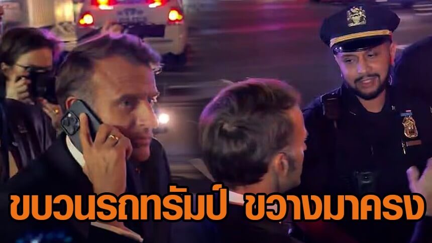 'ประธานาธิบดีฝรั่งเศส' ถูกขวางกลางถนนนิวยอร์ก หลังปิดถนนให้ขบวนรถ 'ทรัมป์'