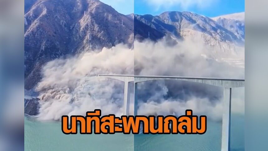 นาทีดินถล่มเชิงสะพานข้ามทะเลสาบในจีน หลังเพิ่งสร้างเสร็จเมื่อต้นปี