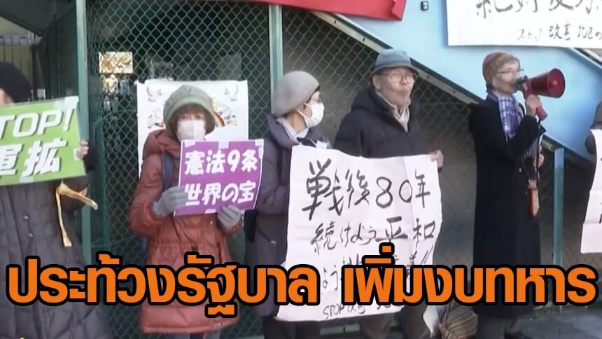 กลุ่มชาวญี่ปุ่นรวมตัวกันในกรุงโตเกียวเมื่อวันอาทิตย์เพื่อประท้วงแผนงบประมาณด้านกลาโหมที่สูงเป็นประวัติการณ์ของประเทศ และเรียกร้องให้รัฐบาลภายใต้การนำของนายกรัฐมนตรีซานาเอะ ทาคาอิจิ ลดการขยายอำนาจทางทหาร