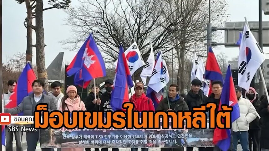 โดยชาวกัมพูชาที่อาศัยอยู่ในเกาหลีจัดการประท้วงวิพากษ์วิจารณ์รัฐบาลรัฐเกาหลี โดยกล่าวหาว่าเครื่องบินฝึกหัดความเร็วเหนือเสียง T-50TH ที่เกาหลีส่งออกให้ไทยถูกนำไปใช้ทิ้งระเบิดกัมพูชา