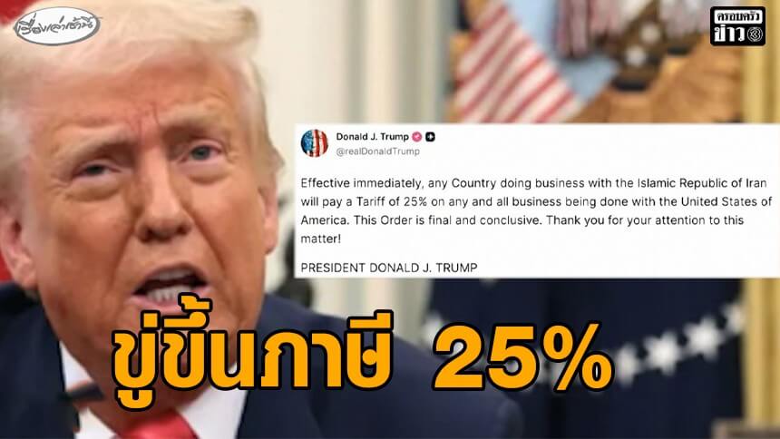 'ทรัมป์' ขู่ขึ้นภาษี 25% ประเทศทำธุรกิจกับ 'อิหร่าน' นักวิเคราะห์เตือนจะทำสงครามการค้ากับจีนปะทุขึ้นอีก