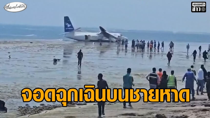 เครื่องบินโดยสารโซมาเลีย ร่วงลงจอดฉุกเฉินกลางชายหาด รอดชีวิตทั้งลำ