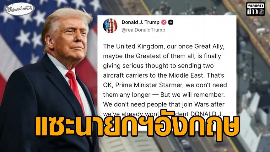 'ทรัมป์' แซะนายกฯอังกฤษ "เราไม่ต้องการคนร่วมสงครามตอนที่เราชนะแล้ว"