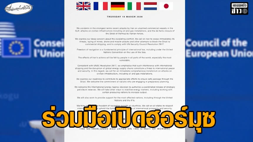 หลายประเทศในยุโรปและญี่ปุ่นได้ออกแถลงการณ์ร่วมกันว่า จะดำเนินการที่เหมาะสมเพื่อเปิดช่องแคบฮอร์มุซ แต่ไม่ได้บอกว่าจะทำอย่างไร หลังจากการโจมตีโรงงานพลังงานหลายแห่งในภูมิภาคอ่าวเปอร์เซียเมื่อวันก่อน ส่งผลให้ราคาน้ำมันและก๊าซพุ่งสูงขึ้นท่ามกลางสงครามระหว่างสหรัฐฯ และอิสราเอลกับอิหร่าน