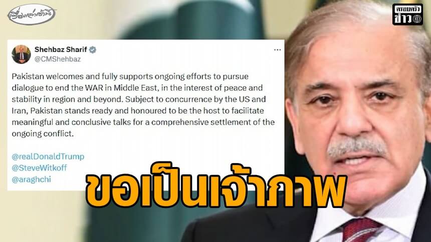 'ปากีสถาน' เสนอตัวเป็นเจ้าภาพ เจรจายุติสงครามระหว่าง สหรัฐฯ-อิหร่าน