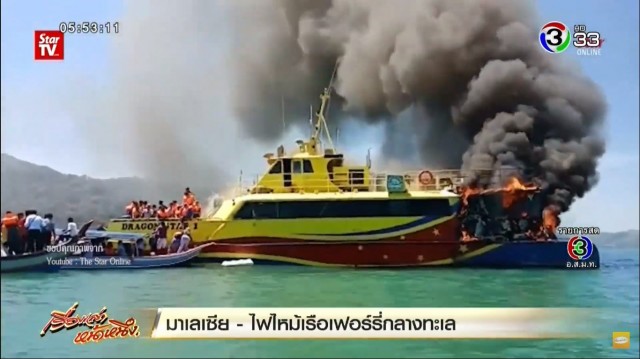 มาเลเซีย - เกิดเหตุไฟไหม้เรือข้ามฟากกลางทะเล ที่เดินทางจากเมืองกัว เกาะลังกาวี มุ่งหน้าปลายทางที่เมืองกัวลาปะลิส รัฐปะลิส ประเทศมาเลเซีย ผู้โดยสารจำนวนมาก ต้องกระโดดลงน้ำเอาชีวิตรอด ท่ามกลางไฟที่ลุกลาม และเสียงระเบิดที่ดังขึ้นหลายครั้ง
