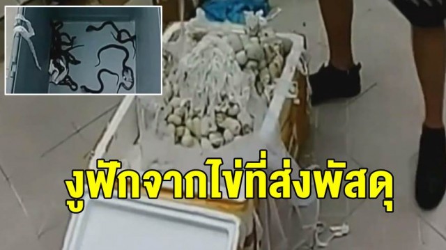 ส่งไข่งูทางพัสดุ เจออากาศร้อนทำงูฟักไข่ เลื้อยเพ่นพ่านกลางสถานีรถไฟจีน