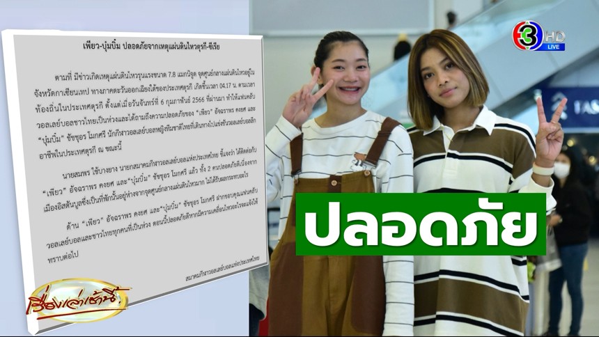 สุดเศร้า 'แผ่นดินเขย่าตุรกี' พรากชีวิตนักวอลเลย์สาวพร้อมสามี ด้าน 2 นักตบไทย 'บุ๋มบิ๋ม-เพียว' ยันปลอดภัยดี