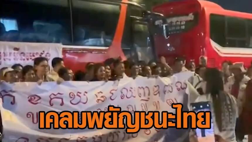 กัมพูชาจัดทัวร์ บัส 23 คัน เที่ยว 2 ปราสาท ถือป้ายเคลมพยัญชนะไทย - คนไทยไม่แพ้ แห่เที่ยวคึกคัก