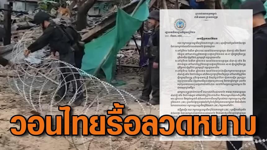 JBC กัมพูชา ออกหนังสือประณามไทย อ้างถูกรุกล้ำดินแดน จี้รื้อลวดหนาม-สิ่งกีดขวาง