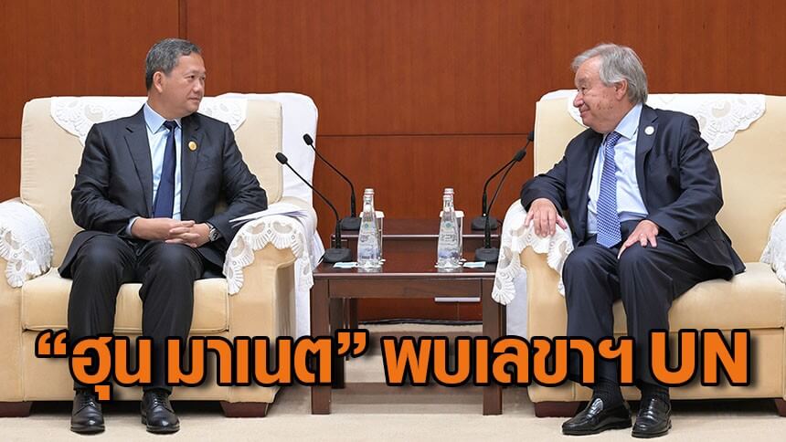 “ฮุน มาเนต” นายกรัฐมนตรีของกัมพูชา เข้าพบ “อันโตนิโอ กุเตอเรส” เลขาธิการสหประชาชาติ หรือ UN คาดพูดคุยเรื่องสถานการณ์ชายแดนไทย-กัมพูชา หลังทูตกัมพูชาประจำสหประชาชาติ เข้าพบไปก่อนหน้านี้ อ้างถูกไทยยั่วยุ