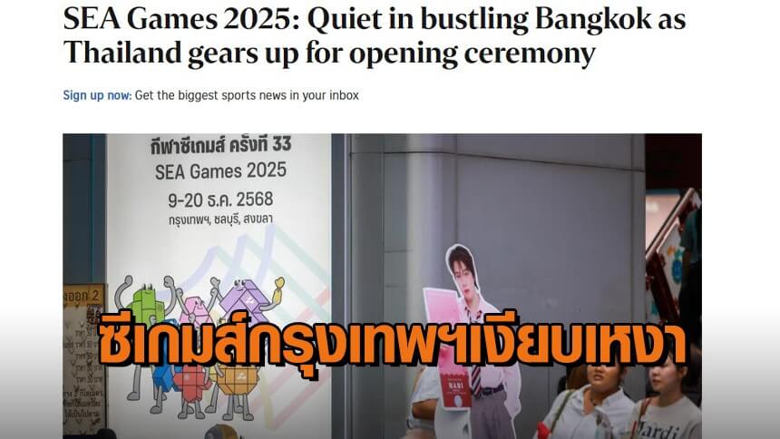 สื่อแห่งนี้ได้ตั้งข้อสังเกตว่า กรุงเทพฯ เมืองที่มีประชากรนับสิบล้านคน ดูเงียบเหงา ไร้วี่แววบรรยากาศของมหกรรมกีฬา “ซีเกมส์” แม้พิธีเปิดจะมาถึงในวันที่ 9 ธันวาคมนี้ก็ตาม