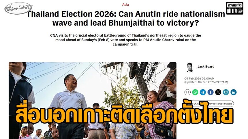 Channel News Asia เกาะติดเลือกตั้งทั่วไปของไทยที่จะมีขึ้นในวันที่ 8 กุมภาพันธ์นี้ พร้อมตั้งคำถามว่า “อนุทิน” จะใช้กระแสชาตินิยมนำพาพรรคภูมิใจไทยคว้าชัยชนะได้หรือไม่