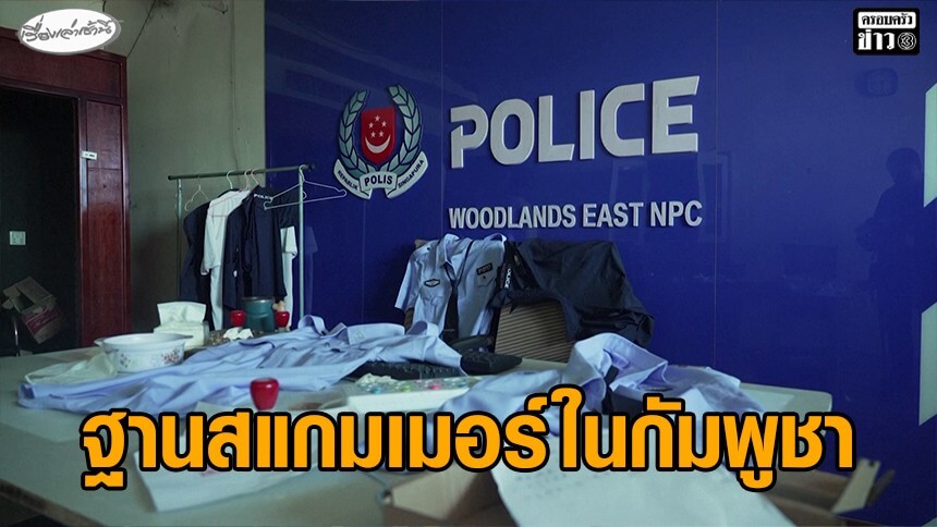 โดยระบุว่า “สถานที่แห่งหนึ่งในกัมพูชา ซึ่งห้องต่างๆ ถูกออกแบบให้ดูเหมือนสำนักงานตำรวจในสิงคโปร์และออสเตรเลีย เอกสารต่าง ๆ กระจัดกระจายอยู่บนโต๊ะและพื้น พบเศษซากของโรงงานฉ้อโกงที่ถูกทิ้งร้างอย่างเร่งรีบ
