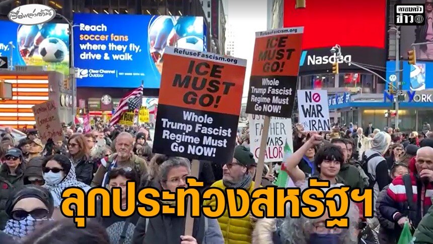 ม็อบนับร้อยประท้วงที่ไทม์สแควร์ ต่อต้านสหรัฐฯ ถล่มอิหร่าน หวั่นซ้ำรอยสงครามอิรัก