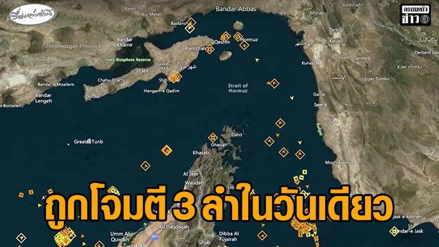 สำนักข่าวต่างประเทศรายงาน “เรือสินค้าบรรทุกสินค้า” ต่างสัญชาติถูกโจมตี 3 ลำ ภายในวันเดียว ด้วยวัตถุไม่ทราบชนิดในช่องแคบฮอร์มุซ ท่ามกลางการสู้รบในภูมิภาคตะวันออกกลาง