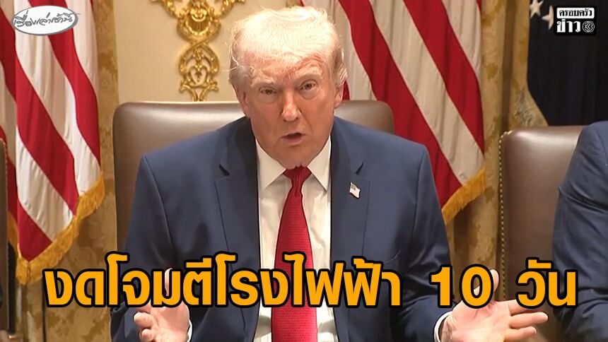 นอกจากนั้น ทรัมป์ ยังได้โพสต์ผ่านทรูธ โซเชียล ประกาศระงับการโจมตีโรงไฟฟ้าของอิหร่านเป็นเวลา 10 วัน ตามคำขอของรัฐบาลอิหร่าน และกล่าวว่าการเจรจากับเตหะรานยั้นเป็นไปด้วยดี