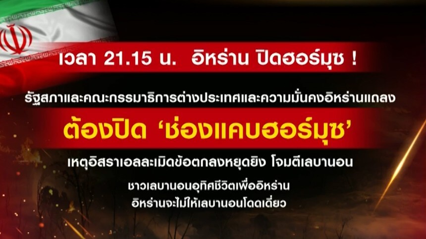 อิหร่านประกาศปิดช่องแคบฮอร์มุซ หลังอิสราเอลละเมิดข้อตกลง ถล่มเลบานอนครั้งใหญ่